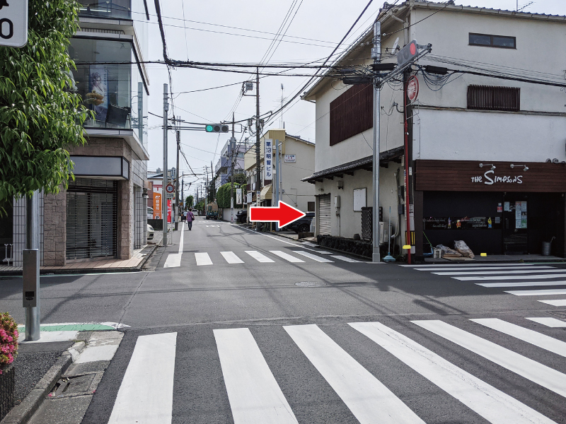 とんかつ屋さんの前まで来ましたら左折します。