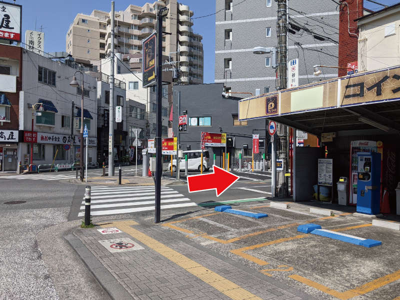 左に曲がってすぐの、二つのパーキングの間にある道をお進みください。